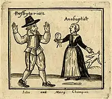 - ↑ The Leacherous anabaptist, or, The dipper dipt Date:. Henry E. Huntington Library and Art Gallery. (1681).