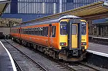 The British Rail Class 156 Super Sprinter is a diesel multiple unit passenger train. A total of 114 sets were built between 1987 and 1989 for British Rail by Metro-Cammell's Washwood Heath works. They were built to replace elderly first-generation DMUs and locomotive-hauled passenger trains.