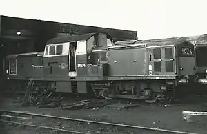 The Clayton examples were delivered to the Scottish Region depots at Polmadie (D8500–D8553) and Haymarket (D8554–D8567), although some later migrated to Kingmoor (Carlisle) on the London Midland Region.[2] The Beyer Peacock locomotives were new to the North Eastern Region at Thornaby (D8588–D8591) and Gateshead (D8592–D8603) and to the Eastern Region at Tinsley (12) and Barrow Hill (1). In September 1963 numbers D8501 and D8536 moved to the Tyne Dock area where they were tested in multiple on Consett iron ore trains. They proved far too underpowered for this work, and so were moved to Ardsley shed a few months later where they undertook a variety of freight work both individually and in multiple.[5] Subsequently, all of the locomotives allocated to the Eastern Region were transferred to Haymarket where they were employed on freight traffic in southern Scotland and northern England.