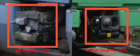 The fleet is fitted with coupling devices (Dellner) different from other Turbostars, and is classified as Class 171 for this reason.[4] The four-car units were built with the new couplers, but Class 170 two-car units were fitted at a later date, and reclassified as Class 171/7 after the modification. Three more two-car units were later acquired, but these were built from new with the new couplers.