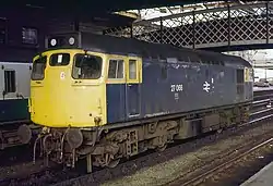 British Rail's Class 27 comprised 69 diesel locomotives built by the Birmingham Railway Carriage and Wagon Company (BRCW) during 1961 and 1962. They were a development of the earlier Class 26; both were originally classified as the BRCW Type 2. The Class 27s were numbered D5347-D5415.[1]