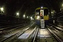To facilitate safe use in the narrow single-bore tunnels on the East London Line, the units are provided with a detrainment device at each driver's cab in the form of folding stairs that deploy from the cab's nose door.[17]