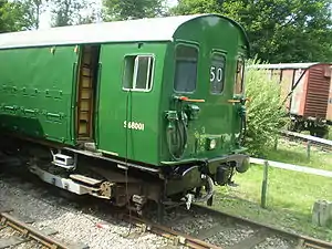 By 1963, it was discovered that one luggage carriage was insufficient for the boat train service.[8] Some trains were operated with paired MLVs, which resulted in a shortage of the vehicles.[8] To overcome the problem, six Trailer Luggage Vans (TLV) were introduced in 1968 and kept in use alongside the MLVs until 1975.[8] These were numbered 68201-68206 as Class 499 and were conventional BG carriages, except for having their gangway ends sealed from use.[8]