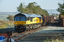 The first locomotive shipped to the UK arrived at Immingham in June 1998,[7] taken to Derby for testing.[2] The second was taken to AAR's Pueblo Test Centre for endurance testing, before shipping to the UK.[2] The locomotives then shipped at a rate of 11 per month into the UK via Newport Docks, until the order was completed in December 2001.[2] After unloading, EWS engineers then simply took off the tarpaulin, unblocked the suspension, and finally as each was shipped with water and fuel, connected the batteries, before starting the engine and handing the locomotive into service.[2] The ability to simply start up '66s' on the dockside and drive them under their own power to depots to enter service was nothing short of a revelation compared with many other BR locomotives, particularly the BR Class 60s.[8]
