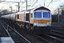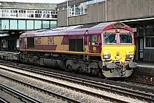 The Class 66 is a type of six-axle diesel-electric freight locomotive developed in part from the Class 59, for use on the railways of the UK. Since its introduction the class has been successful and has been sold to British and other European railway companies. In Continental Europe it is marketed as the EMD Class 66 (JT42CWR).