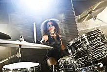 She also toured around the world with Kelis during June 2012, performing in Bali, Jakarta, Singapore, Russia, and the Isle of Wight. She is a founding member of the group DDMC (DJ, Drummer, and MC) with DJ K-la Vie and Liberty Jayne.[1][2]