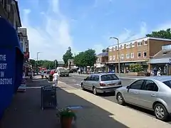 Since 1840, Broadstone has grown from a small farm to a suburb of 10,000 people. Centred on the main road (the B3074), 'The Broadway' is a busy hub of shops, churches, schools and housing. The shops consist of Costa Coffee, Bennett's Bakery, charity shops, a Tesco Express store, a Marks & Spencer supermarket and a jewellery shop. Broadstone is notable for its large recreation fields and heathland park, as well as an annual Christmas parade and lights. The 24-acre (0.097 km2) Broadstone Heath possesses some of the original heathland which covered the Poole Basin.