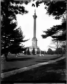 Brock's Monument is a 56-metre (185 ft) column atop Queenston Heights in Queenston, Ontario, Canada, dedicated to Major General Sir Isaac Brock, one of Canada's heroes of the War of 1812. Brock, a British Army officer in charge of defending Upper Canada from a United States invasion, and one of his aides-de-camp, Lieutenant-Colonel John Macdonell, are interred at the monument's base on the heights above the battlefield where both fell during the Battle of Queenston Heights. The current monument was constructed between 1853 and 1856, which replaced an earlier Monument to Brock on the battlefield (1824–1840). Parks Canada maintains the monument, the most imposing feature of Queenston Heights National Historic Site. It is the fourth oldest war memorial in Canada.[1]