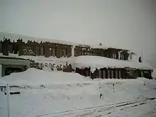 With the construction of border defences between East and West Germany that ran close to the Brocken, public train services to the mountain ended on 13 August 1961. Brocken station acted as accommodation for the Border Troops of the GDR.[3] In the period to 1987, only a few materiel goods trains called at the station. After the political changes following the fall of the Berlin Wall, the Brocken Railway was reopened in 1991 and Brocken station was once again used as a railway station.
