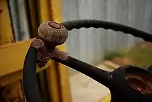 Other names include "granny knob", "necker's knob" because it facilitated driving by using only one arm leaving the other arm for romantic purposes, and "wheel spinner."[8][9][10]