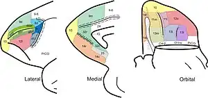 ![]() Prefrontal cortex of Sapajus. BA14 is shown in orange through some coronal sections. | |
