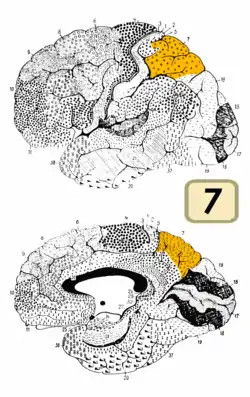 ![]() Image of brain with Brodmann area 7 shown in yellow | |
