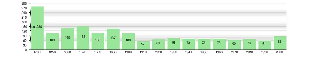 The highest population in the village was during the 17th century. The slow population decline intensified in the late 19th century with emigration to the cities and to other countries. In 1990, agriculture and livestock, which for centuries were the main sources of income, employed about a third of the workforce. In recent decades, the number of vacation homes has increased markedly.[2]