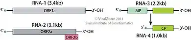 Viral replication is cytoplasmic, and is lysogenic. Entry into the host cell is achieved by penetration into the host cell. Replication follows the positive stranded RNA virus replication model. Positive stranded rna virus transcription, using the internal initiation model of subgenomic rna transcription is the method of transcription. The virus exits the host cell by tubule-guided viral movement. Plants serve as the natural host. Transmission routes are mechanical and contact.[3][4]
