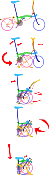 Four stages in folding. The final step of lowering the saddle locks the package together