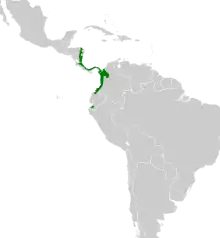 (Note that the map includes the southwestern Ecuador range of the intermedia subspecies of white-vented plumeleteer.)