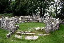 Three main types of megalithic tomb are found in Wales, the Severn-Cotswold type in the south-east, the Portal dolmen type and the Passage graves which are characteristic of the Irish Sea area and the Atlantic façade of Europe and Morocco. Megalithic tombs are most common in the western lowlands.[23] There is evidence of close cultural links with Ireland, particularly in the Early Neolithic period.[24]
