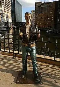 The Bronze Fonz is a public artwork by American artist Gerald P. Sawyer, located on the Milwaukee Riverwalk in downtown Milwaukee, Wisconsin. The Bronze Fonz depicts Henry Winkler as "The Fonz," a character in the 1970s television series Happy Days, which was set in Milwaukee.[1]