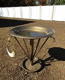 Both the laver and its base were to be made of bronze.[1] Bronze mirrors supplied by the Israelite women who served at the Tabernacle door were used to make the laver and its base,[2] and they were then anointed with holy oil along with the Tabernacle, all its furnishings and the priests.[3]