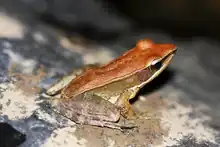 - 1 2 S.D. Biju; Sonali Garg; Stephen Mahony; Nayana Wijayathilaka; Gayani Senevirathne; Madhava Meegaskumbura (2014). "DNA barcoding, phylogeny and systematics of Golden-backed frogs (Hylarana, Ranidae) of the Western Ghats-Sri Lanka biodiversity hotspoty, with the description of severn new species". Contributions to Zoology. 83 (4): 269–335. doi:10.1163/18759866-08304004. Archived from the original on 3 March 2016.