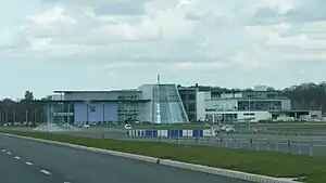 In February 2015, it was announced that Brooklands would receive a multimillion-pound facelift.[34] The £4.68 million Heritage Lottery Fund grant funded an £8.5 million Brooklands Aircraft Factory and Race Track Revival Project. This resulted in the relocation and restoration of the Grade II Listed 1940 Bellman Hangar complete with a comprehensive new "Aircraft Factory" exhibition inside,[35][36] as well as construction of a new two-storey Flight Shed housing archives and a workshop on the ground floor with another aircraft exhibition hall above. Restoration of the Northern section of the adjacent Finishing Straight was also part of the scheme and included revealing its largely intact 'lost' section under the hangar's post-war floor. The project was successfully completed and officially opened to the public by Prince Michael of Kent on 13 November 2017.[37][38]