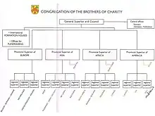The Congregation is divided into four administrative provinces that correspond with the continents: Europe, the Americas, Asia and Africa. These four provinces represent a total of 14 regions that correspond in turn with the countries where the brothers are present. The superior general is elected for a term of six years by the general chapter and he runs the Congregation with the help of the general council, and the provincial and regional superiors. In the United States, they have houses in Philadelphia and Washington, D.C.[5]