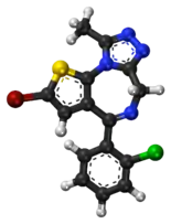 Brotizolam[3] (marketed under brand name Lendormin) is a sedative-hypnotic[4] thienotriazolodiazepine[5] drug which is a benzodiazepine analog.[6] It possesses anxiolytic, anticonvulsant, hypnotic, sedative and skeletal muscle relaxant properties, and is considered to be similar in effect to other short-acting hypnotic benzodiazepines such as triazolam or midazolam.[7] It is used in the short-term treatment of severe insomnia. Brotizolam is a highly potent and short-acting hypnotic, with a typical dose ranging from 0.125 to 0.25 milligrams, which is rapidly eliminated with an average half-life of 4.4 hours (range 3.6–7.9 hours).[8]