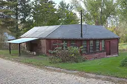 Brown-Moore Blacksmith Shop is a historic blacksmith shop located at Luzerne Township, Fayette County, Pennsylvania. The shop began operation in 1822, and remained open until 1939. It is a rectangular brick building with a corrugated metal roof. It has a rectangular wood frame wagon shop addition rebuilt in 1919 after a fire. The shop has two large stone, hand-operated forges.[2]
