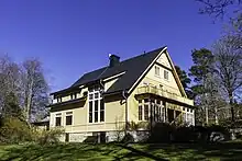 The estate is 35 ha (0.35 km2).[1] In addition to the main house there are several buildings, most of which were constructed during 1900–06, when the extension to the main house was built. There is a pavilion, a forest studio, a beach studio, the Caretaker's House, a stable with an additional shed and an ice cellar made of limestone. The buildings are designed in the same style as the main house, except for the Caretaker's House, which is inspired by one of the houses at Standgatan in Visby, the Burmeister 4.[2]