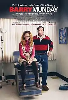 Barry Munday (alternatively known as Family Jewels) is a 2010 American comedy film directed by Chris D'Arienzo; it is based on the novel Life is a Strange Place by Frank Turner Hollon. It is D'Arienzo's directorial debut. The film stars Patrick Wilson as the title character, as well as Judy Greer, Chloë Sevigny, Jean Smart, Shea Whigham, Missi Pyle, Christopher McDonald, Billy Dee Williams and Malcolm McDowell. The story revolves around a womanizer waking up to find his testicles have disappeared and is facing a paternity lawsuit by a woman he can't remember having sex with. The film premiered at the South by Southwest Film Festival on March 13, 2010,[1] got picked up by Magnolia Pictures and was given a limited release on October 1. Barry Munday garnered negative reviews from critics who praised Wilson's performance but criticized D'Arienzo's quirky filmmaking leading the vulgar material.