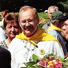 When he presided over the Association, Brunon Synak strived for elements of Kashubian culture and language to be present during the service and liturgy. In October 2004, he initiated the Kashubian trip to Rome to pray for the beatification of bishop Konstantyn Dominik. For the first time in the history of St Peter's Basilica in the Vatican, a mass was said with elements of the liturgy in the Kashubian language.[38][39] During his presiding over the Association, in June 1999, the first Convention of Kashubians took place in Chojnice.[40] At that time, works on the Act of 2005 on National and Ethnic Minorities and Regional Languages were in progress.[41]