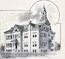 Schools in the Brunswick area date back to 1840, when a small one-room log "subscription" or private school was constructed. Following the Civil War, attention turned more toward public education, with the first public school opening in the town circa 1868.[12] A large three-story brick school was constructed in 1871 and served the community well into the early 20th century, being replaced by a new school in 1930–31. The present junior high / high school building used by Brunswick R-II school district was constructed in 1956–57. The most recent addition to the facilities is a new grade school constructed in 1991–1992.[5] In 1949 Missouri reorganized public education, with the state board of education consolidating or reorganizing many small rural schools into larger districts, this gave birth to the aforementioned Brunswick R-II district. The district, in student count, is the second largest in Chariton County, trailing Salisbury schools. Enrollment in all grades from 2006 to 2010 averaged 250 students.[13] The school colors are red and black. Their mascot is the Wildcat. Brunswick R-II participates in sports and other activities as a Class 1A school under guidelines from the Missouri State High School Activities Association.
