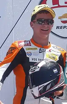 Bryan Schouten (born 10 September 1994) is a Dutch former motorcycle racer who retired at the end of the 2017 season. Schouten is a former winner of the Dutch ONK 125GP Championship and the Dutch ONK Moto3 Championship,[1] and has also competed in the German IDM 125GP Championship, the German IDM Moto3 Championship, the Spanish CEV Moto3 series and the European Superstock 600 Championship. He won the IDM Superstock 600 Championship in 2016, but even as a champion he could not find the resources to start in 2017.[2] He decided to stop his career, however, less than a week later, Schouten returned to his decision when Ten Kate Racing Products approached him for testing the new Honda CBR-1000RR SP2 and started in the (Dutch) NK SuperCup 1000. After one season, Schouten has decided to start his social career at the age of 23 years. But his dreams are that there will be time and opportunities to help young riders in the future - maybe even on a part-time schedule.[3][4]