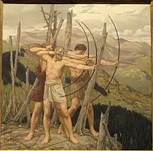 Bryson Burroughs was born in 1869 in Hyde Park, Massachusetts; then an independent suburb of Boston.[5] He grew up in Cincinnati, Ohio.[1] After high school, he began to pursue painting, and attended the Art Students League of New York and won a scholarship to learn in academies in Paris. There he worked under Luc-Olivier Merson and met noted painter Pierre Puvis de Chavannes and would bring him his work for advice.[5][1]