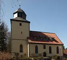 The Protestant church was built by Eberhard von Buchenau between 1568 and 1573. It was designed as a single-nave church with a choir from 1820. The interior design dates from the 1800s and is equipped with three-sided, two-storey galleries. Two wooden reliefs from an altar shrine, several grave monuments in the choir from the 16th to 19th centuries and the organ from 1787 are notable.