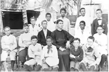 After two years in Belize, Stanton left for priestly studies and was ordained in the Philippines, during this time helping at the Manila Observatory, which was a part of the Jesuit Ateneo de Manila University. He returned to Belize in 1904 to establish the church at Benque Viejo del Carmen on Belize’s Western border with Guatemala. Benque had been a mission station in the heart of Mayan lands, but beginning with Stanton took on permanency. He described the parish in his letters home. "I have eight hundred people here at Benque Viejo. ... Some talk a little Spanish, but most of them Mayan. My district comprises over 30 parishes and I am the only priest."[2] He wrote of battling his way for 40 miles through the bush, about 10 of it on foot with a 50-pound saddle bag after his horse slipped its halter.[2] After Stanton contracted cancer, he returned in 1909 to the United States, where he died at the age of 40.
