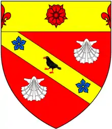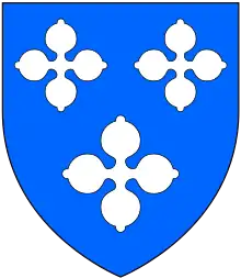 "Samuel Vincent of Buckingham House in Norfolk, Esquire" bore arms: Azure, three quatrefoils argent, as recorded in Essay to Heraldry by Richard Blome, published in 1684.[30] These arms were also the arms of Sir Anthony Vincent, 4th Baronet (c. 1645–1674) of Stoke d'Abernon in the County of Surrey.[41] Vincent mortgaged the estate to Sir Thomas Meers and eventually Buckenham Tofts was acquired by Robert Partridge (d.1710).[6]