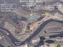 Buckland Airport (IATA: BKC, ICAO: PABL, FAA LID: BVK, formerly 7K5; Iñupiaq: Nunatchiam Mirvia or Kaŋium Mirvia) is a state-owned public-use airport located one nautical mile (1.85 km) southwest of the central business district of Buckland,[1] a city in the Northwest Arctic Borough of the U.S. state of Alaska. The airport is situated on the Buckland River.
