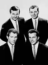 In April 1960 the Crickets backed the Everly Brothers on their first UK concert tour but were not billed as their backing group.[9] By 1962, the Crickets consisted of Curtis, Allison, Glen D. Hardin and Jerry Naylor. That year, the Crickets' version of the Gerry Goffin–Carole King song "Don't Ever Change" (Liberty Records), featuring Naylor on lead vocals,[6] reached the top five in the British single charts.[10] Also in 1962 they released Bobby Vee Meets the Crickets, an album with Bobby Vee on lead vocals. For their 1962 UK tour, Allison was temporarily out of the group because of commitments with the U.S. Air Force.
