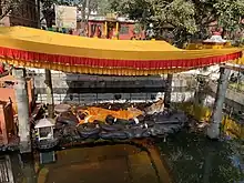 The Budhanilkantha Temple has become the site where thousands of pilgrims visit when Haribondhini Ekadashi Mela takes place on the 11th day of the Hindu month of Kartika (October–November) every year.[6] This is a special ritual to wake up Lord Vishnu from his long sleep. A big fair is also held at the temple area every year on the auspicious occasions such as Ekadashis, Harishayani and Haribodhini of hindu lunar calendar which marks the 4-month sleeping period of Lord Vishnu.