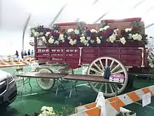A hitch of Clydesdales pulled the City of St. Louis' float, co-sponsored by Budweiser, in the Tournament of Roses Parade from 1954 to 2011.[19][20] In 2014 the Clydesdales returned to the Rose Parade, this time pulling their beer wagon. The President of the Tournament of Roses rode on the beer wagon instead of the usual classic car.[21]