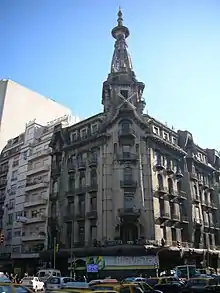 The Kavanagh Building (Spanish: Edificio Kavanagh) is located at 1065 Florida St. in the barrio of Retiro, overlooking Plaza San Martín. It was constructed in the 1930s in the Rationalist style, by the architects Gregorio Sánchez, Ernesto Lagos and Luis María de la Torre and was finished in 1936. The building is characterised by the austerity of its lines, the lack of external ornamentation and its large prismatic volumes. It was declared a national historical monument in 1999,[25] and is one of the most impressive architectural masterpieces of Buenos Aires. Standing at a height of 120 m, it still retains its impact against the modern skyline of the city. In 1939 its façade received an award from the American Institute of Architects.[26]