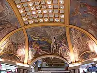 In 1945 the building was remodelled by architects José Aslan and Héctor Ezcurra, and the offices were separated from the rest of the building. A large central cupola was constructed and decorated with 12 frescos by artists Lino Enea Spilimbergo, Antonio Berni, Juan Carlos Castagnino, Manuel Colmeiro and Demetrio Urruchúa. These frescos, executed in 1946, are some of the most important in Buenos Aires.