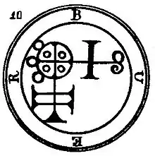 Buer is a spirit that appears in the 16th-century grimoire Pseudomonarchia Daemonum and its derivatives, where he is described as a Great President of Hell, having fifty legions of demons under his command. He appears when the Sun is in Sagittarius. Like Chiron, the chief centaur of Greek mythology, he teaches natural and moral philosophy, logic, and the qualities and uses of all herbs and plants, and is also capable of healing all infirmities (especially of humans) and bestows good familiars.[1]