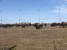 In 1973, the province of Alberta gifted the province of Prince Edward Island a herd of 15 bison.[2] The bison have served as a tourist attraction for Prince Edward Island since then. In 2014, the government transferred the park to the Buddhist charity Moonlight International. Prior to this transfer, the government had been spending $40,000 annually on operating costs. In 2014, there were 38 bison in the park. In 2018, there were 56 bison in the park, partly due to the Buddhist belief in not harming animals.[3]46°5′33″N 62°37′4″W / 46.09250°N 62.61778°W