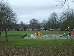 The park has an area of about 6 hectares (15 acres). It was formerly the site of Old Buffery Colliery; it was purchased from M & W Grazebrook in 1891, and opened in 1893 with a range of recreational facilities. The garden was maintained by council staff. For many years there was a conservatory, or Glass Pavilion; there were four tennis courts, a cycle track, a bowling green and a putting pitch.[1][2][3]