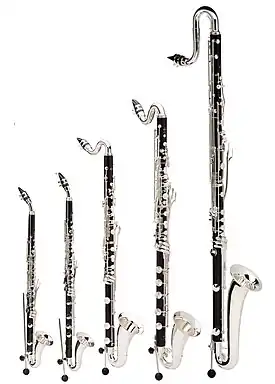 - Buffet Crampon: Clarinets with a French fingering system (Boehm), namely (almost) the entire clarinet family in tunings from high E♭ to contralto, also oboes, English horns, bassoons (with French fingering and drilling) and saxophones