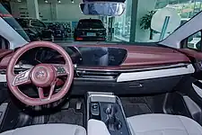Following the example of other Buick models from the new stylistic line debuting at the same time, the Electra E4 gained a simple and minimalist design of a spacious passenger cabin covered with a 1.2 square meter roof window. The cockpit is formed by a one-piece curved array of integrated digital gauges with a central 30-inch 6K touchscreen.[4] The car is equipped with an extensive package of 28 compartments located in the passenger compartment, as well as an extensive ambient lighting system in 121 colors.[5]