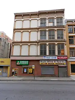 Building at 409 West Baltimore Street, also known as the N. Hess & Bro. Building, is a historic retail and wholesale building located at Baltimore, Maryland, United States. It is a four-story brick commercial building with a cast-iron façade above an altered storefront, erected about 1875. Built originally for a wholesale grocery company, it was subsequently occupied by a boot and shoe factory, and a series of wholesale and retail dry goods or clothing stores.[2]