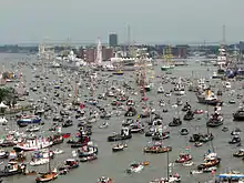 The nautical event SAIL Amsterdam takes place on and around the IJ.